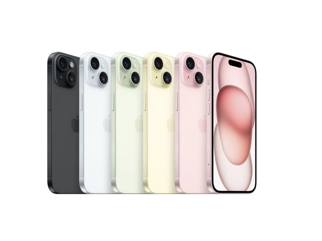 iPhone 15 je dostupný v kapacitách 128 GB, 256 GB a 512 GB a v pěti elegantních barvách – růžové, žluté, zelené, modré a černé.
