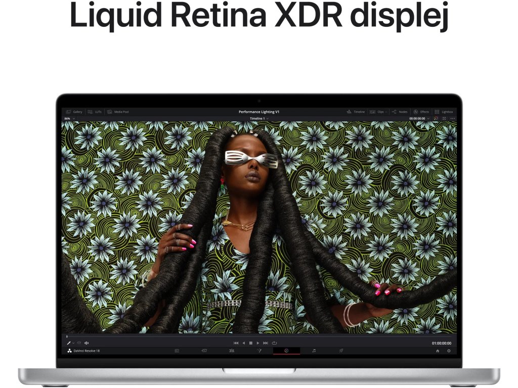 Displej:16,2″ Liquid Retina XDR, 3456 × 2234 px, jas až 1600 nit, technologie ProMotion.